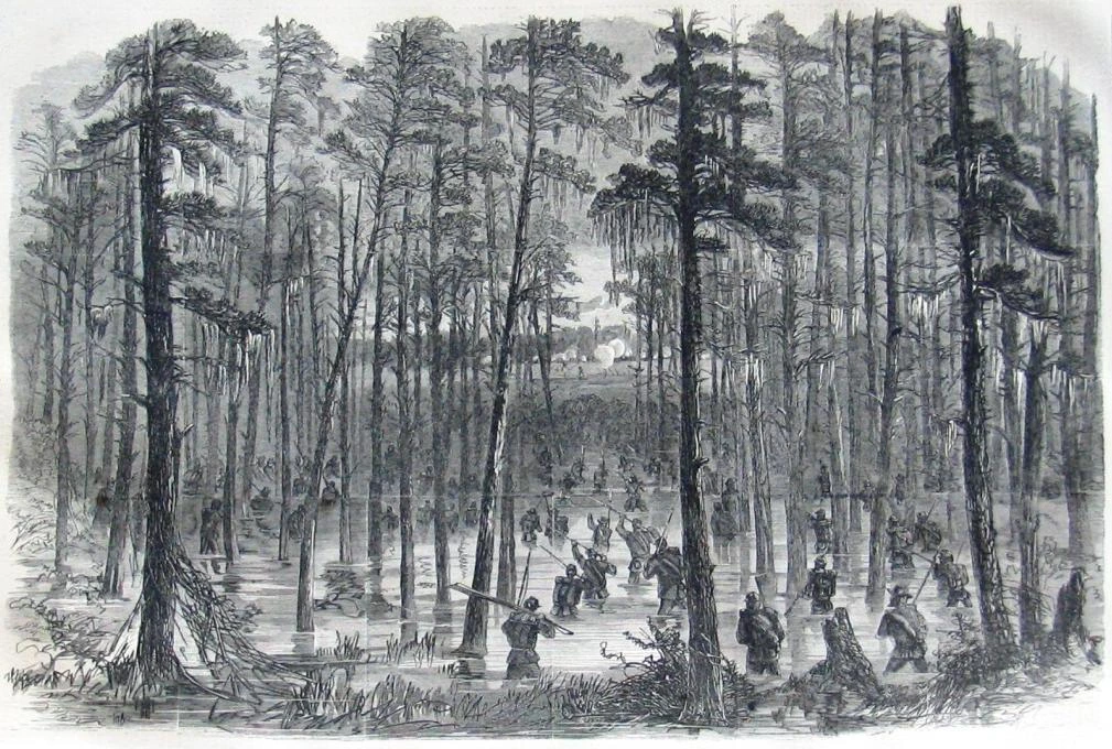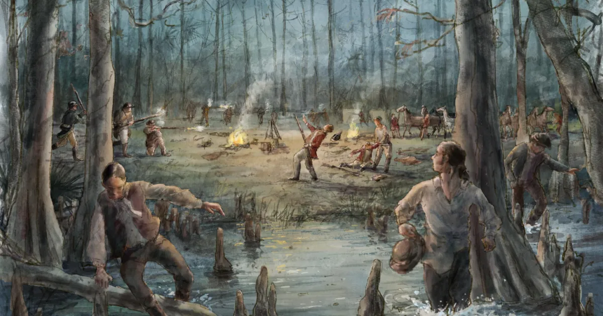 British forces utilized the elevated grounds of Declaration signer Thomas Heyward Jr.’s plantation as a base before crossing the flooded Black Swamp.