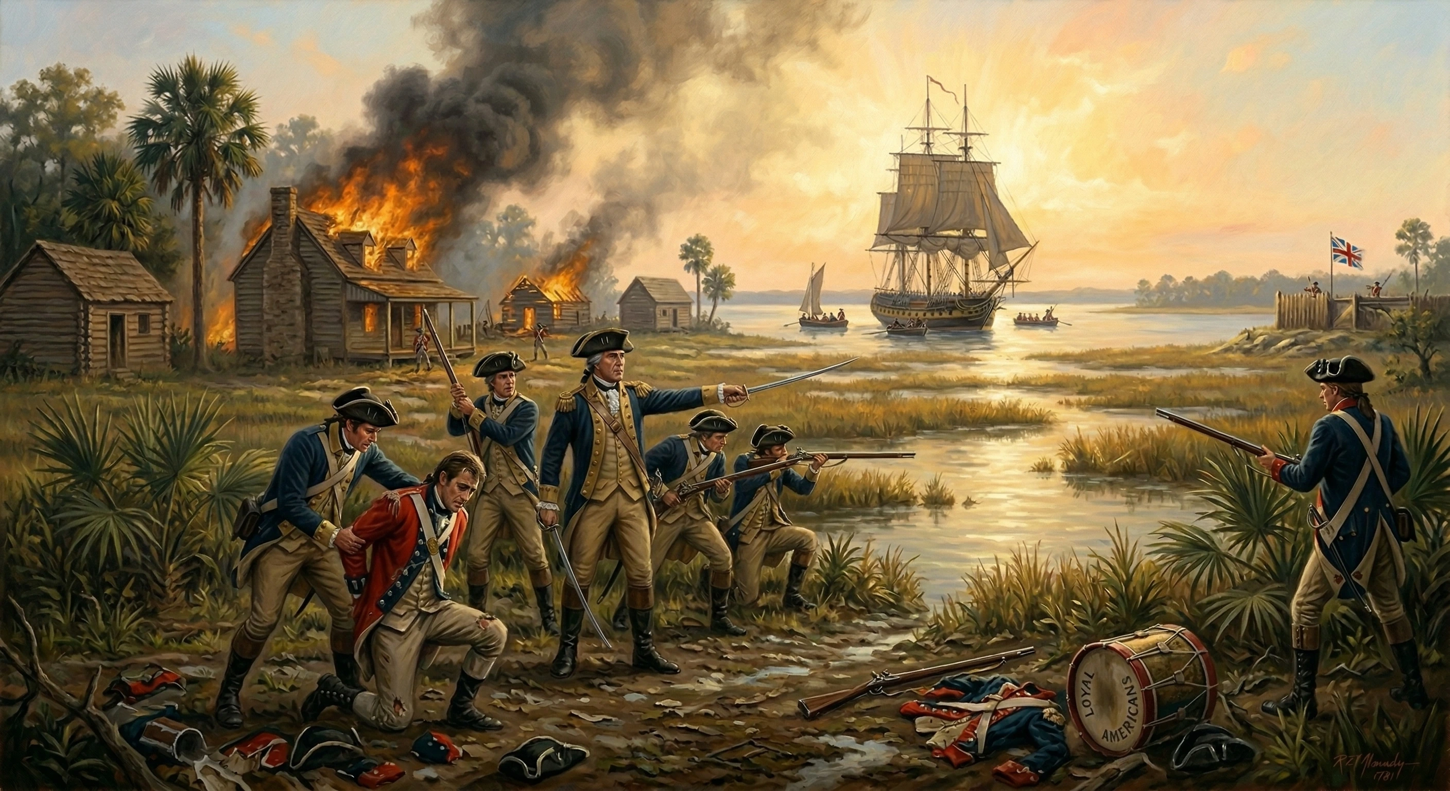 Loyalists disguised as Native Americans ambushed a 6th South Carolina Regiment guard post, burning the site and capturing its six-man garrison. This raid marked a sharp escalation in partisan violence across the Jasper District.