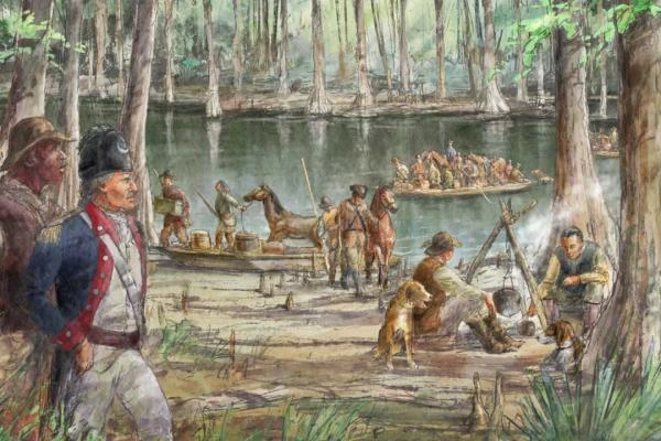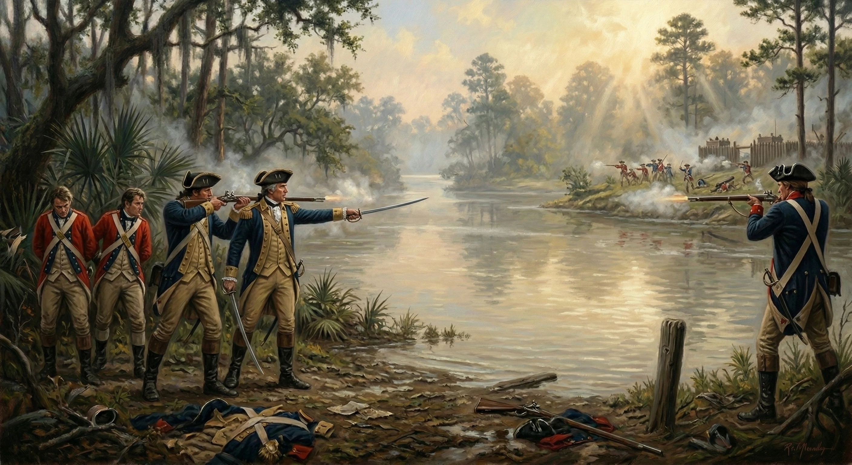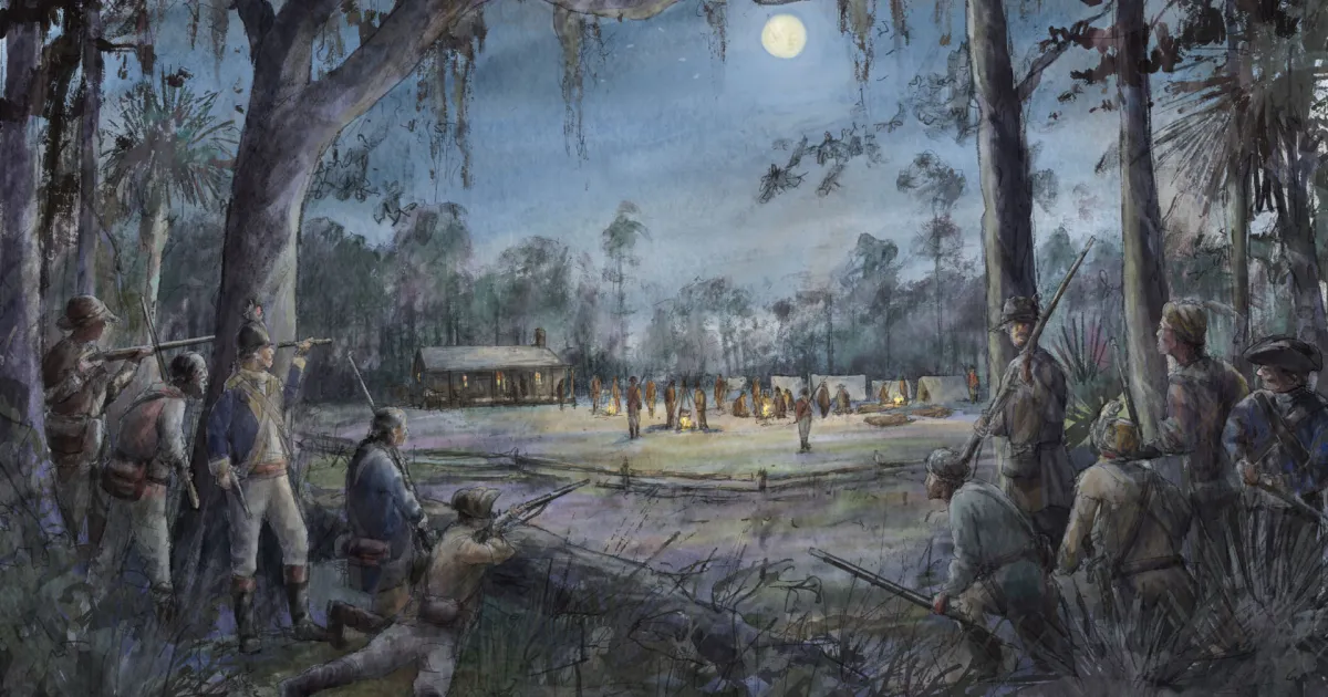 Loyalists ambushed Patriot militia along the King’s Highway near Hutchinson Island.