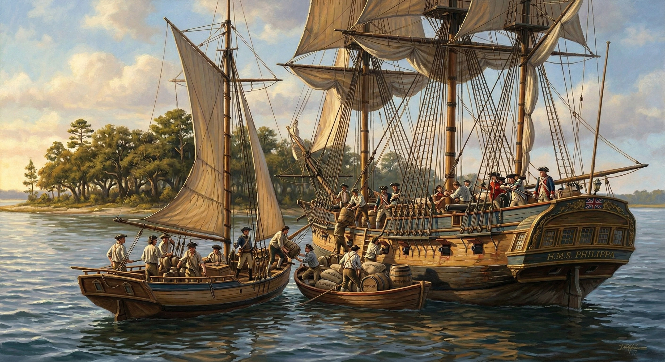 In one of the earliest armed confrontations of the Revolution in South Carolina, Patriot forces seized 16,000 pounds of gunpowder and munitions from the British ship Philippa off Daufuskie Island.